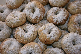 Ingredientes: 500 gr. de harina, 250 gr. de azúcar, 1/2 vaso de aceite de oliva, 1/2 vaso de vino blanco, 25 gr. de ajonjolí y azúcar glass.